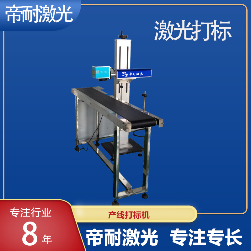 在線激光打標(biāo)機(jī)又被稱為飛行激光打標(biāo)機(jī)等,主要是以各種型號(hào)打標(biāo)機(jī)為基礎(chǔ),增加各種流水線配套設(shè)施,并有工業(yè)電腦控制激光系統(tǒng),為產(chǎn)品提供各種清晰、永久、不可擦除的激光標(biāo)識(shí)。在線激光打標(biāo)系列是我公司針對(duì)各行業(yè)的產(chǎn)品包裝上的在線噴碼而開(kāi)發(fā)設(shè)計(jì)的高新技術(shù)產(chǎn)品。激光飛行打標(biāo)可以為產(chǎn)品標(biāo)民獨(dú)一無(wú)二的產(chǎn)品序列號(hào),且不可被修改或擦除,起防偽作用或有效阻止流通和銷售環(huán)節(jié)發(fā)生假冒偽劣和串貨等現(xiàn)象。